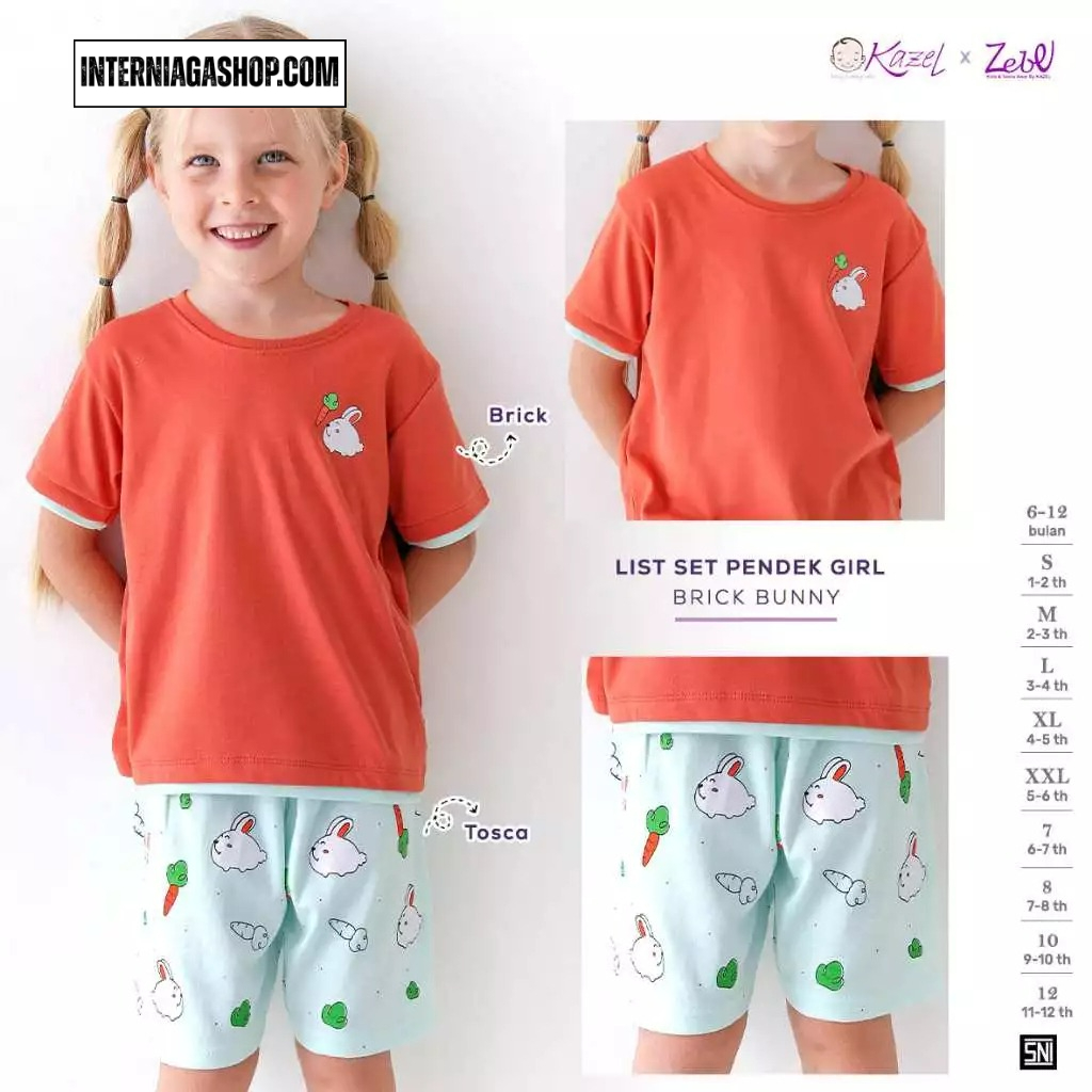 KAZEL LIST SETELAN PENDEK GIRL COLOR BRICK BUNNY SIZE 6-12M