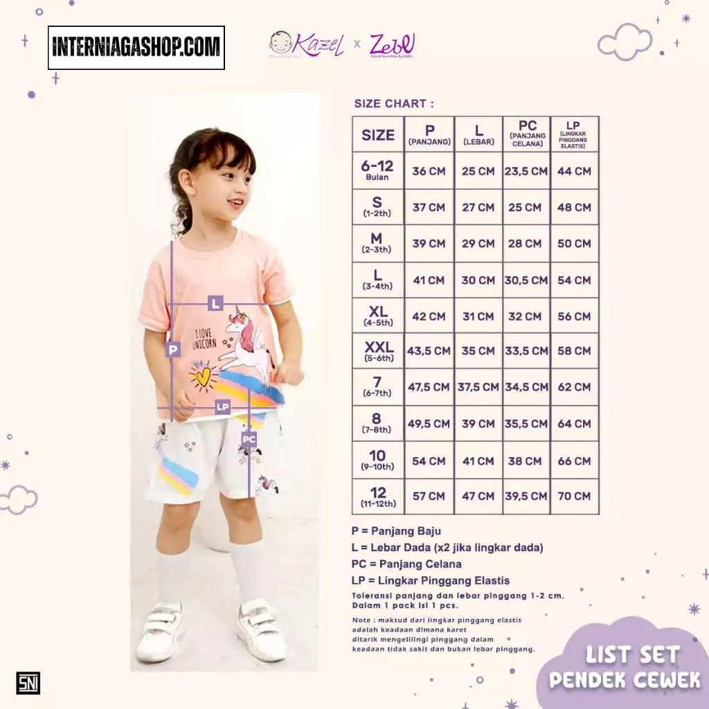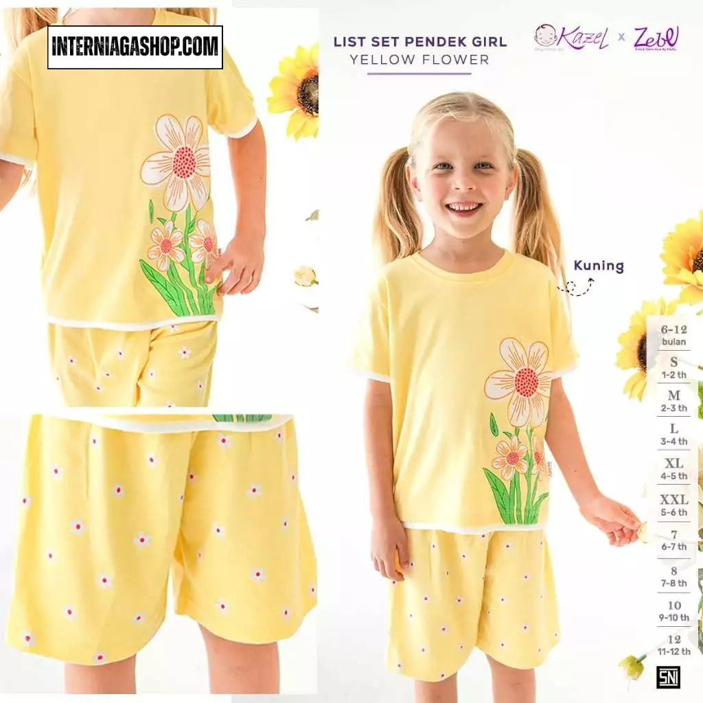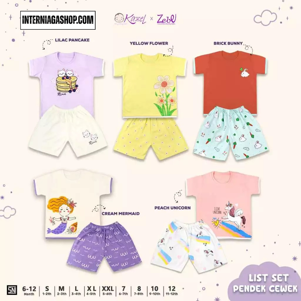 Kazel x Zebe List Set Pendek Girl (1 Stel) Usia 6 bulan – 12 tahun.