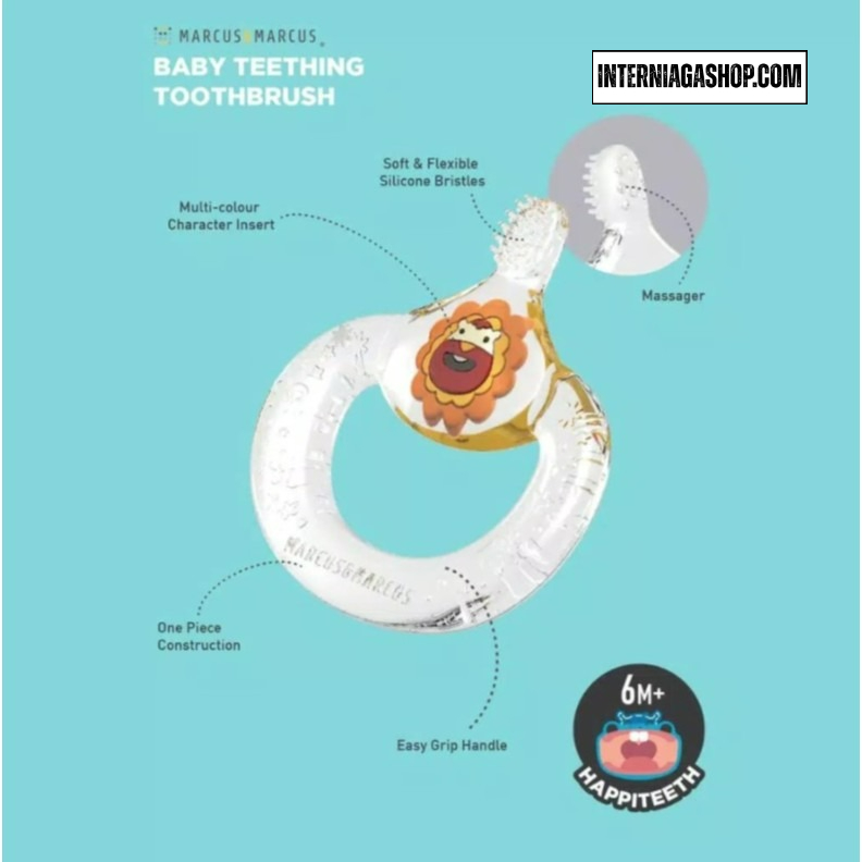 Marcus & Marcus Baby Teething Toothbrush di desain secara sangat unik dan menarik khusus untuk si Kecil yang sedang mulai tumbuh gigi dan bertumbuh dalam perkembangan motorik. Desain Baby Teething Toothbrush mudah dipegang dan digunakan oleh si Kecil secara intuitif. Bulu silikon lembut akan membersihkan gigi bayi dan juga berfungsi memijat gusi si Kecil yang sedang fase tumbuh gigi.